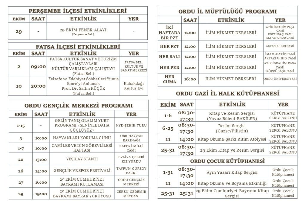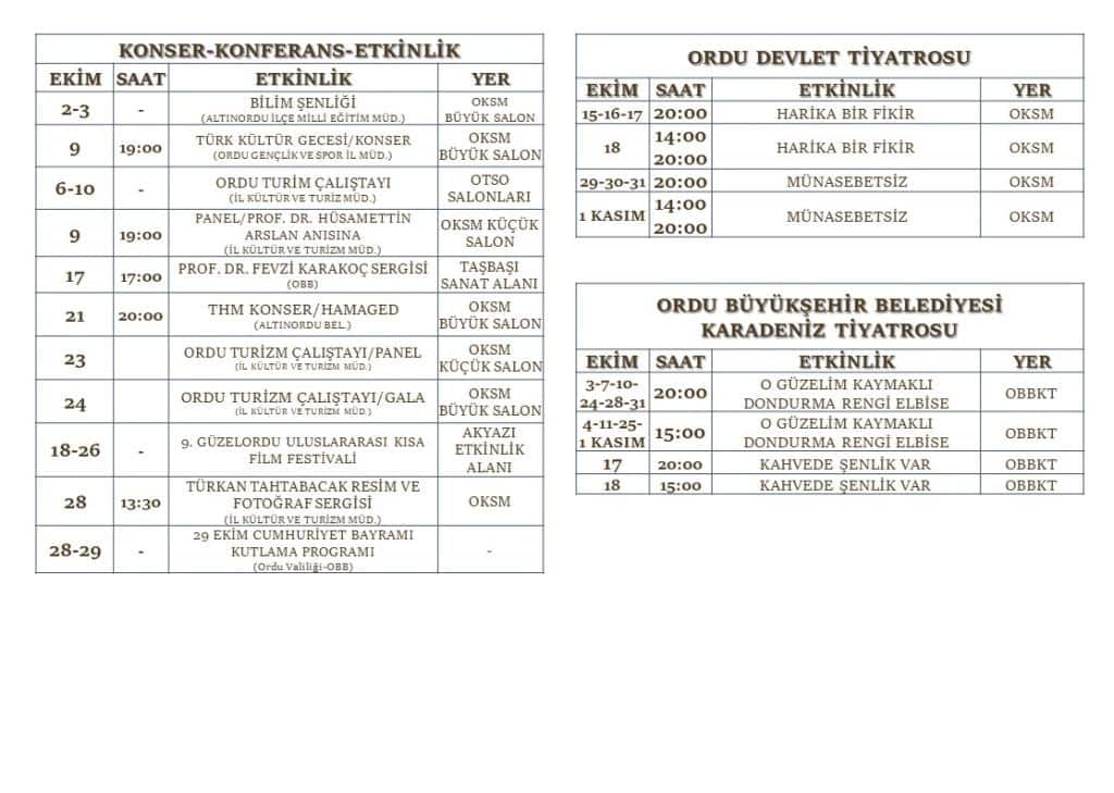 Ordu Kültürel Etkinlik Takvimi-Ekim 2025
